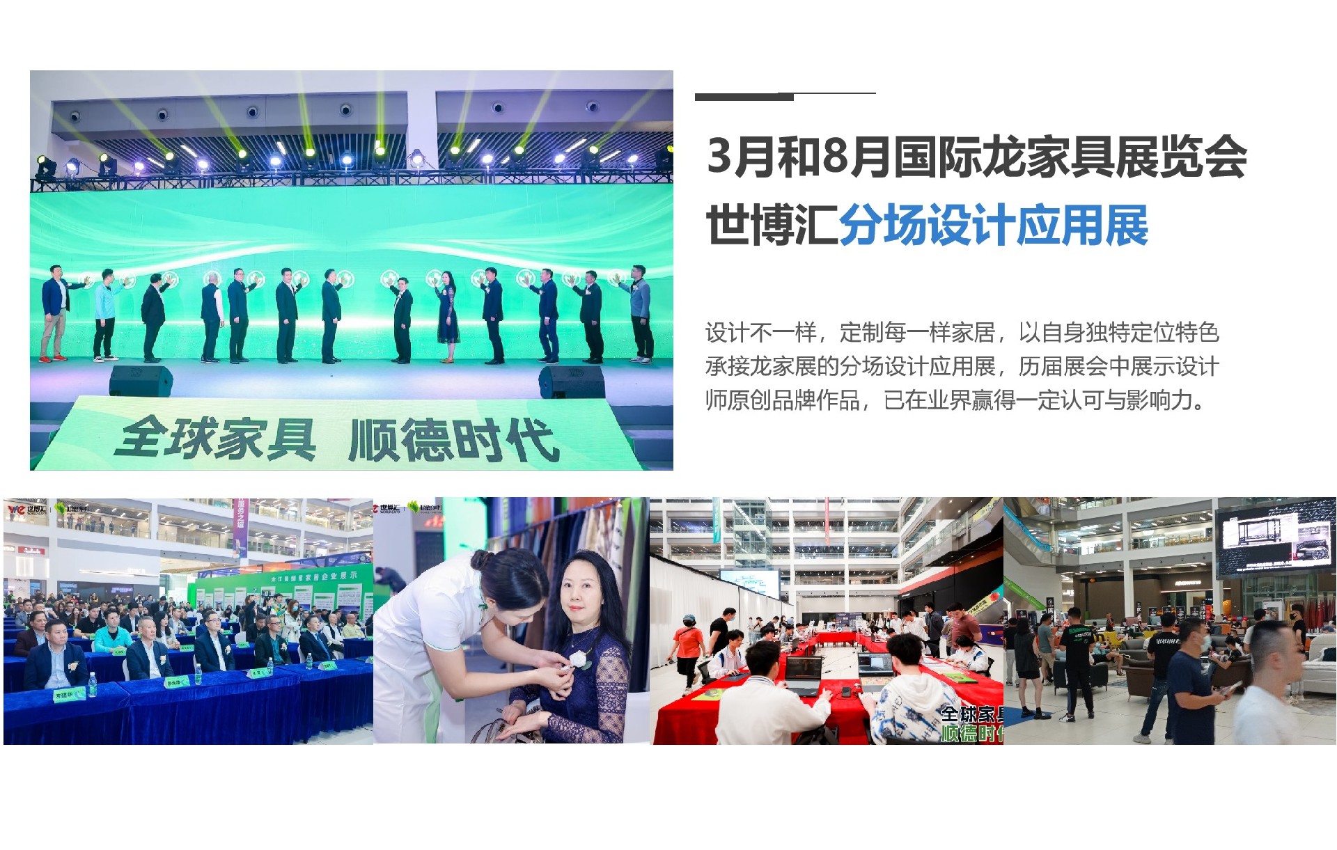 自2020年8月起,世博汇参加龙江家具盛会——国际“龙家具”展览会活动,至今已作为其中的设计分会场,以及自行筹办的世博汇设计周活动,世博汇在家具设计、新材料应用等领域上已经获得业内人士的认可与青睐。